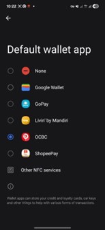 • Pilih aplikasi OCBC mobile sebagai Default Wallet App