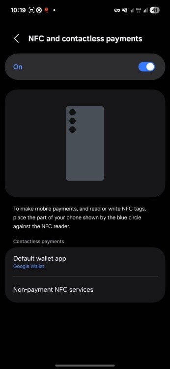 • Klik NFC and contactless payments dan tekan toggle untuk mengaktifkan/mematikan fitur