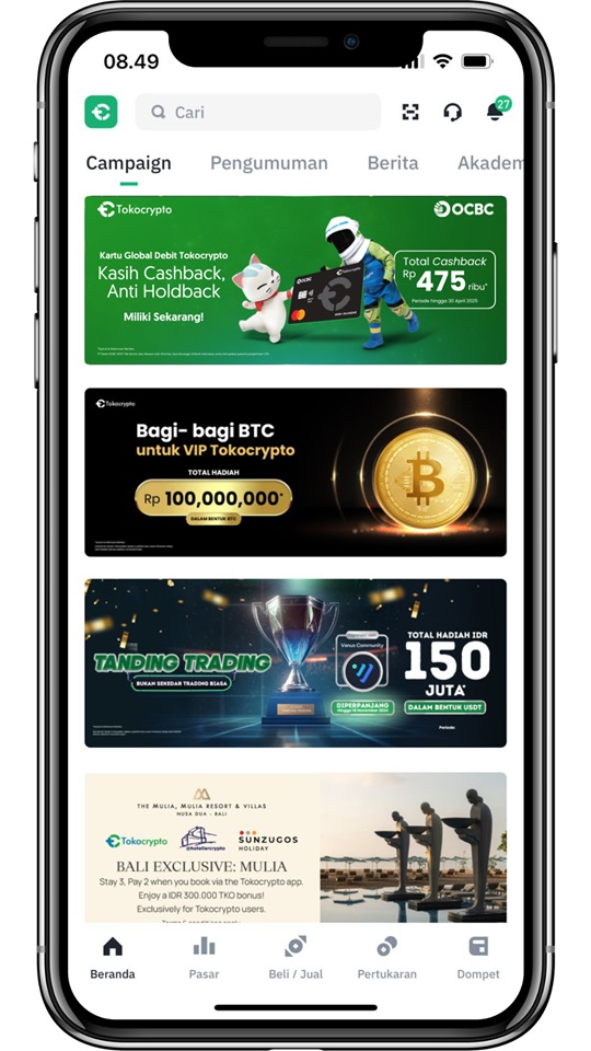Cashback hingga Rp50.000,- dari transaksi menggunakan Kartu Global Debit Tokocrypto di merchant online dan offline
